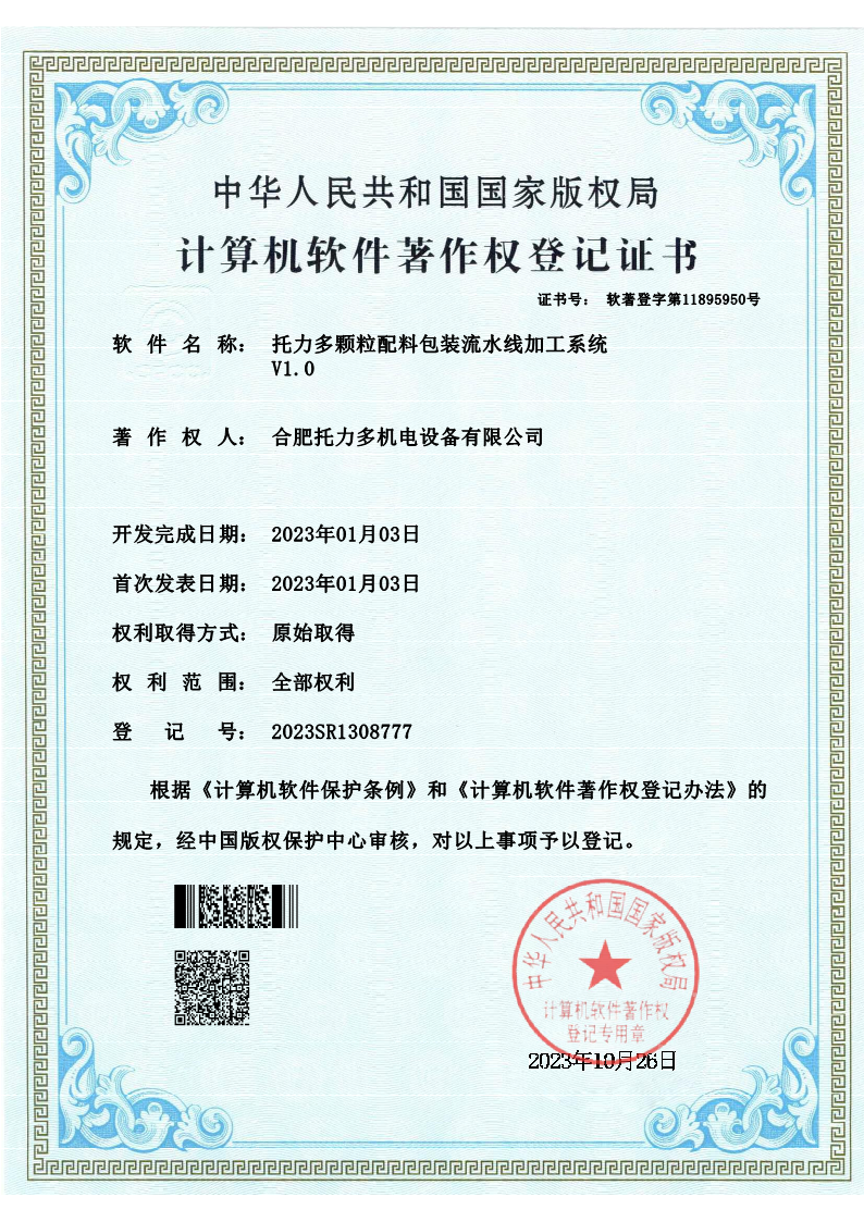 顆粒配料包裝線(xiàn)-軟著(zhù)
